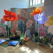 I also collaborated with an electrical engineer to experiment with movement-reactive sculptures. Together we created prototype flowers that bloomed when a hand was waved nearby. This process opened up new possibilities for combining art and technology, teaching me how interactive engineering can bring a playful, tactile quality to my installations.